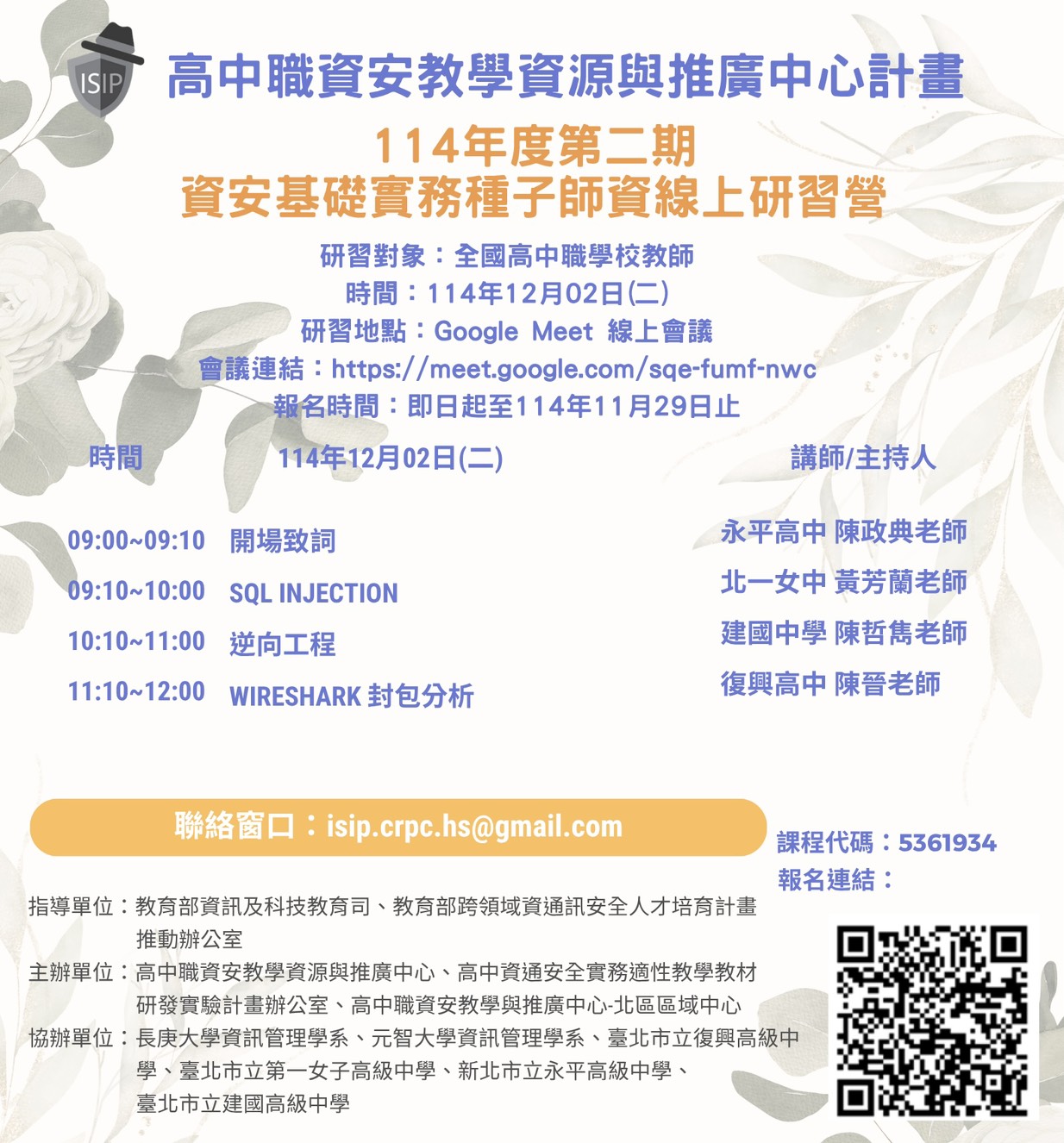 114年度第四期資安基礎種子師資線上研習營
