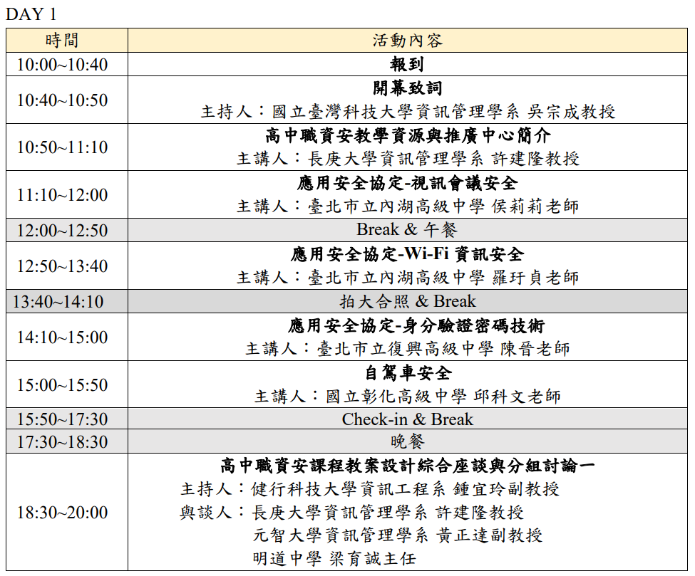 及教案分享座談,協助參與活動之老師們能進一步深化資安課程。